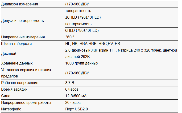 ● Встроенная таблица преобразования и значение HB могут быть прочитаны напрямую, если установлено ударное устройство D/DC