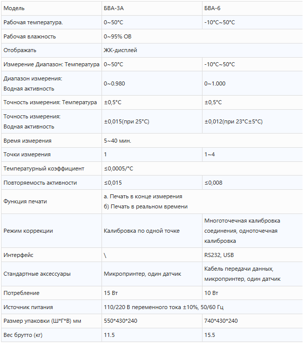 Измеритель активности воды, показывает содержание свободной воды, когда пища стабильна, измеряет возможность размножения микробов. Разработчики пищевых формул используют активность воды для прогнозирования того, насколько миграция влаги повлияет на их продукт, чтобы выбрать подходящую упаковку и метод хранения, чтобы сократить использование антисептиков.