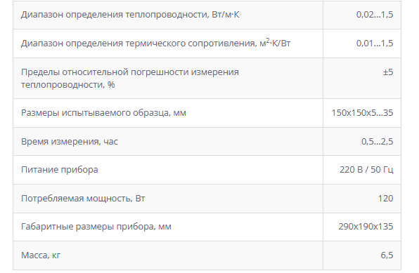 - определения теплопроводности и термического сопротивления широкого спектра строительных и теплоизоляционных материалов методом стационарного теплового потока по ГОСТ 7076-99;