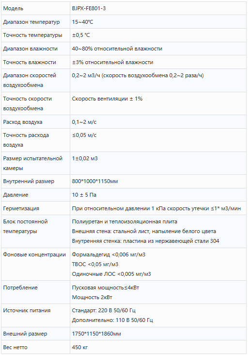 Камера для испытаний на выброс формальдегида BJPX-FE801-3