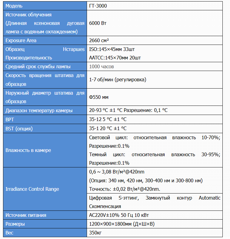 - Система ксеноновых дуговых ламп с водяным охлаждением мощностью 4500 Вт, точно имитирующая спектр солнечного света. Излучение автоматически компенсирует систему, своевременно контролирует излучение, температуру и влажность через замкнутый контур.