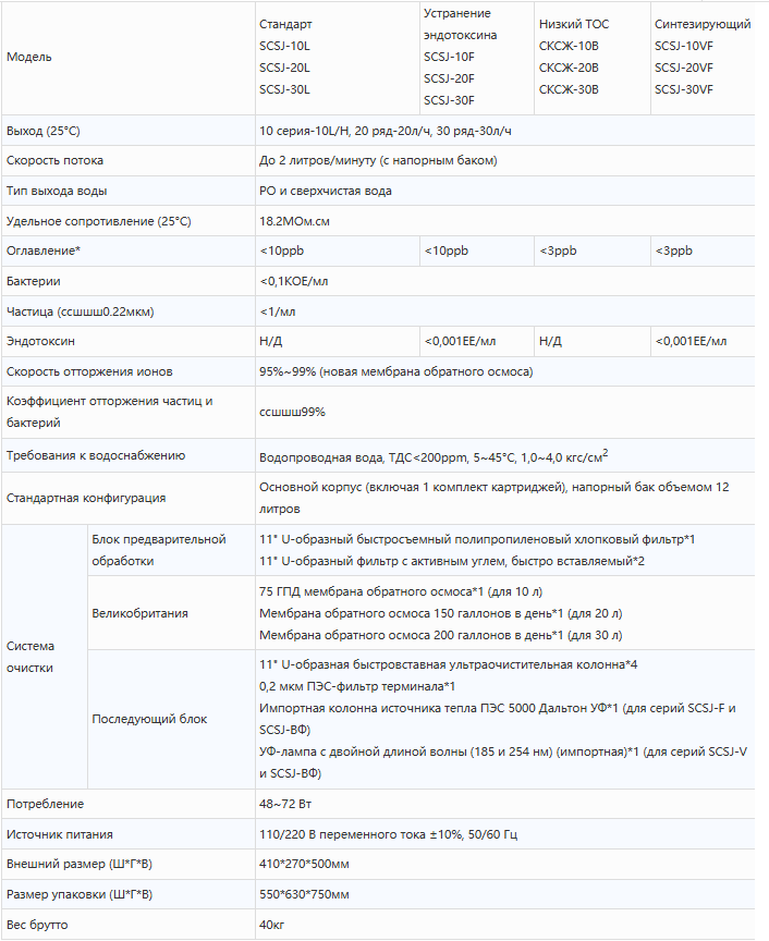 Модель Стандартный SCSJ-10L SCSJ-20L SCSJ-30L