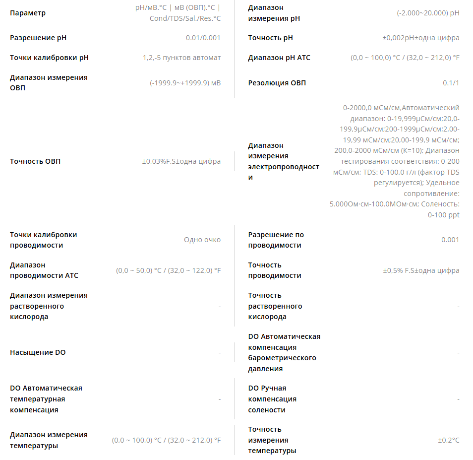 - Калибровка от 1 до 5 точек для режима pH