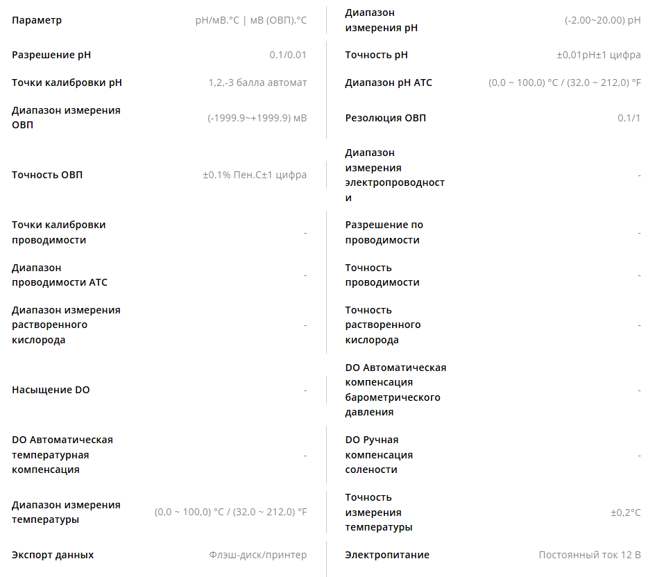 • Оснащен гибким держателем зонда и буферными растворами для pH для удобного использования