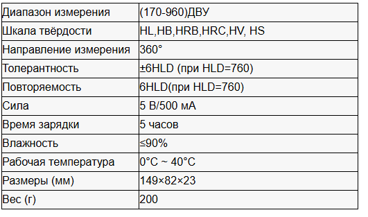 ● Встроенная таблица преобразования и значение HB могут быть прочитаны напрямую, если установлены ударные устройства D/DC
