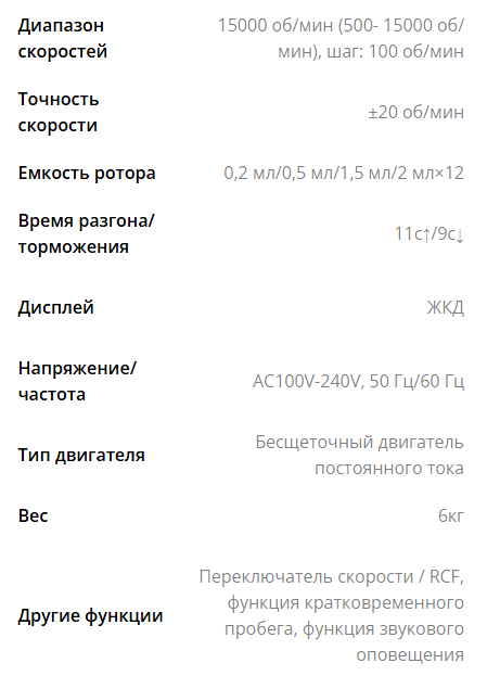 - Импульсный режим работы для быстрых и удобных быстрых вращений. Скорость до 15000 об/мин (15100×g)