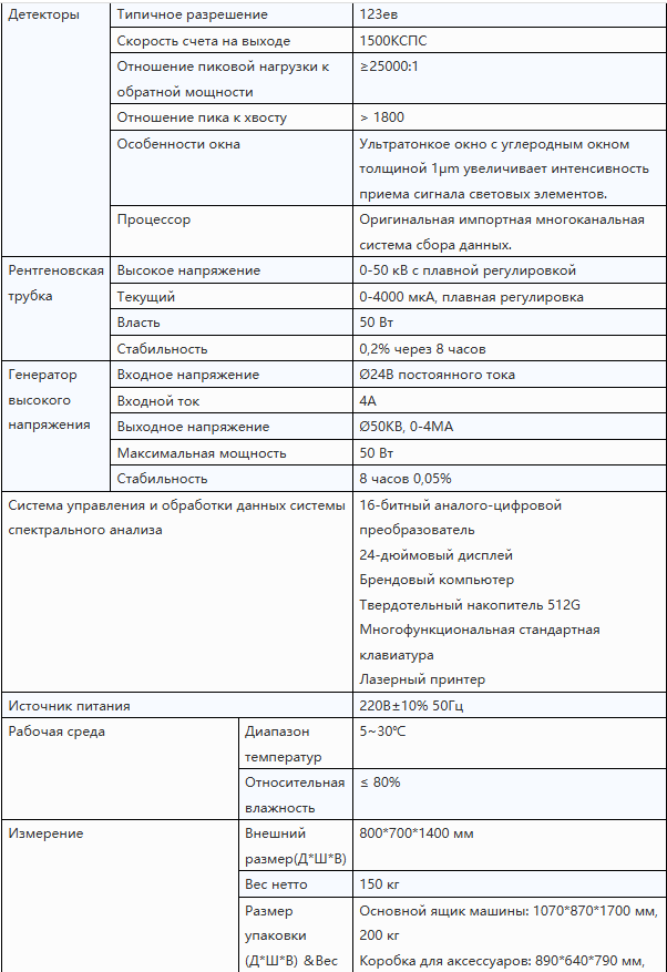 * Для обеспечения точности прибора используются несколько наборов стандартных образцов, включая импортированные стандартные производственные рабочие кривые.