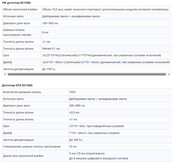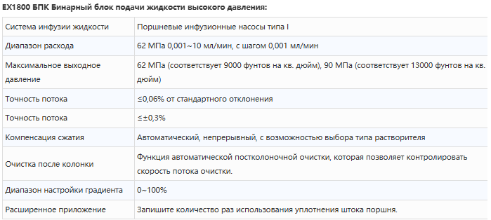 1. Система предлагает комплексный и гибкий изократический режим, а также системы с бинарным и четвертичным градиентами. Возможности детектирования включают КПК, УФ/ВИС, Флорида, РИ и ЭЛС.