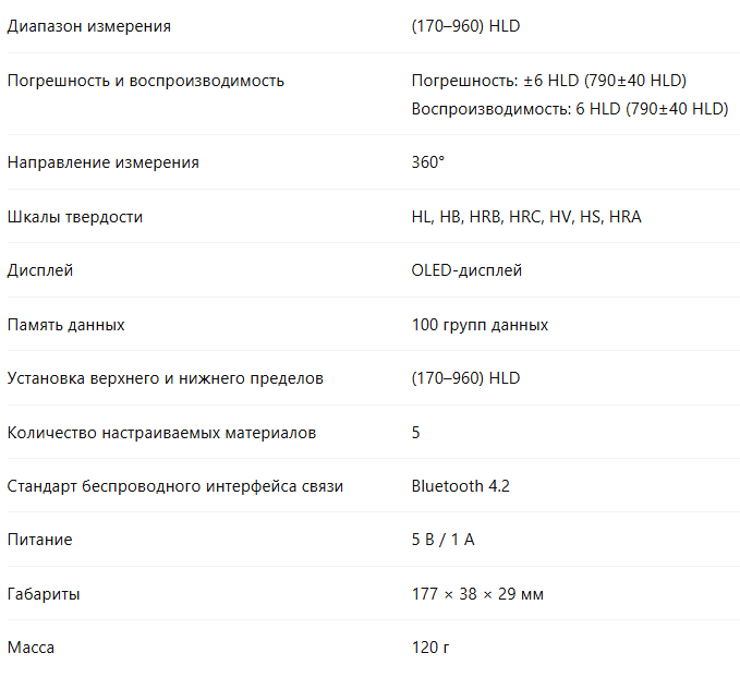 ● Калибровка: может быть выполнена калибровка значения твердости выбранных материалов;