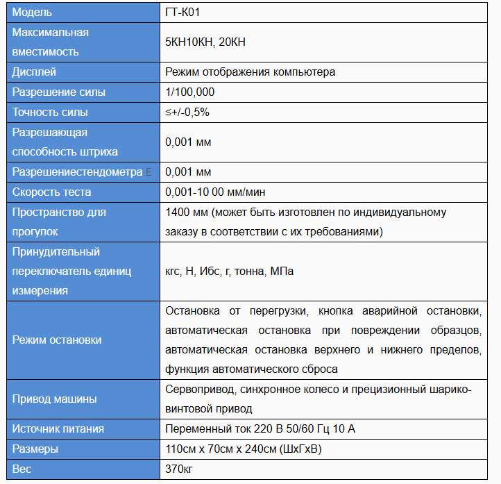 7. Испытательное пространство: ширина испытания 400 мм (стандартная)