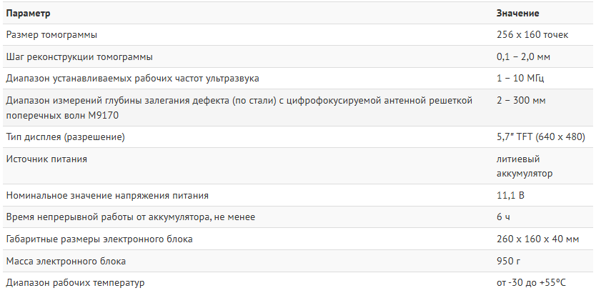 - Скорость сканирования вдоль сварного соединения до 70 мм/с (при шаге сканирования 2 мм).